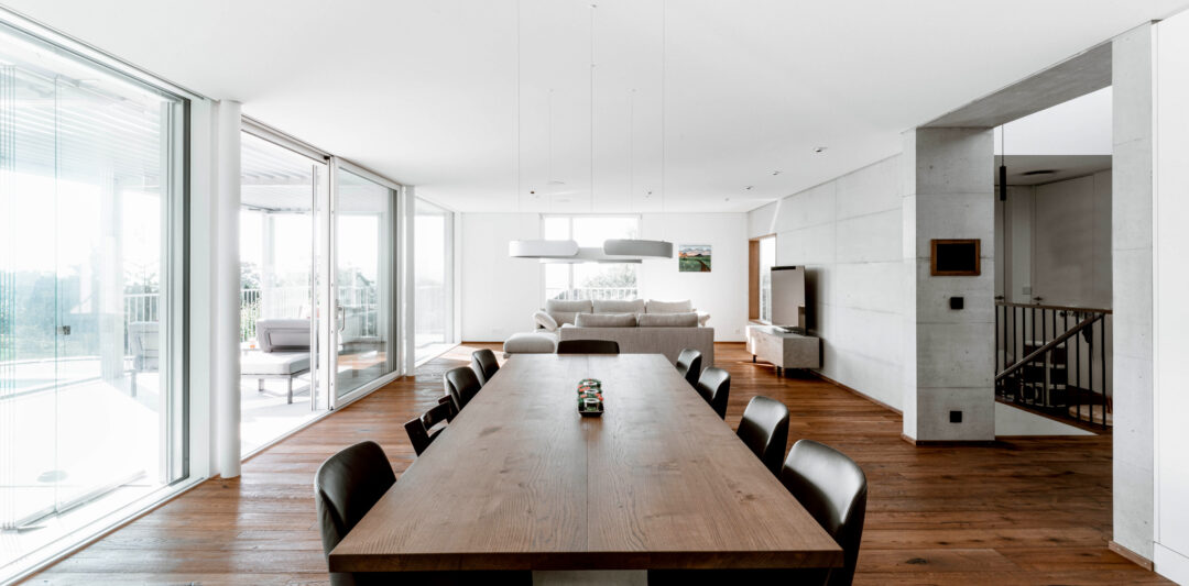 Discover the extra rustic “Vintage” floor made of European oak in an enchanting Swiss villa, where the masterpiece of European oak adds timeless elegance to the modern interior.