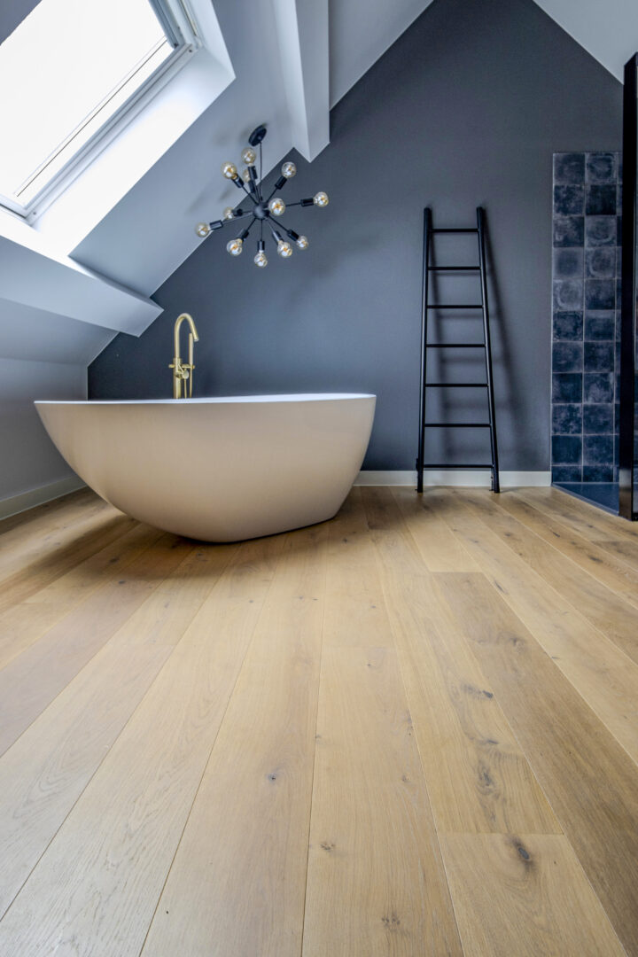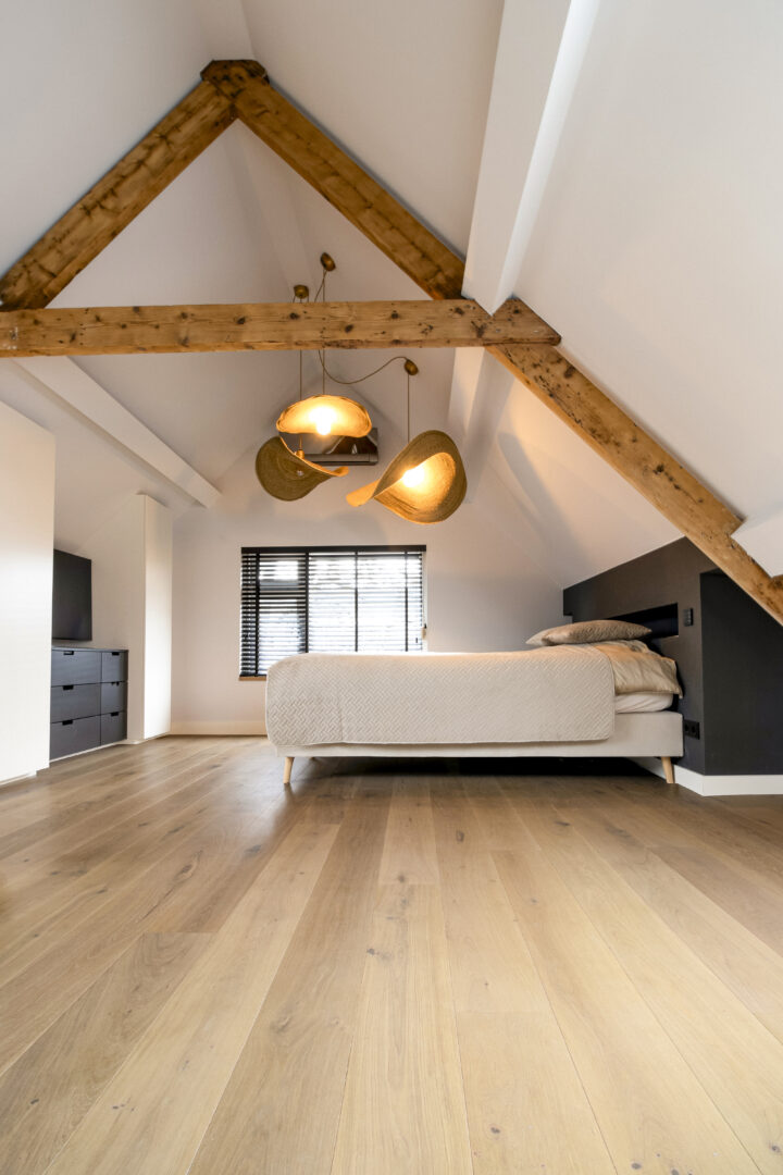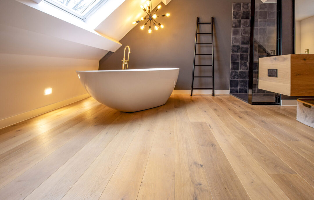 Ontdek de nieuwste toevoeging aan ons portfolio van exclusieve houten vloeren: een prachtige houten vloer in een slaap- en badkamer. Bij T&G Wood streven we voortdurend naar innovatie, en dit project illustreert perfect hoe onze houten vloeren zich aanpassen aan verschillende ruimtes.