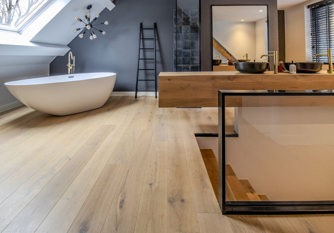 Rustieke houten vloer in Slaap- en Badkamer